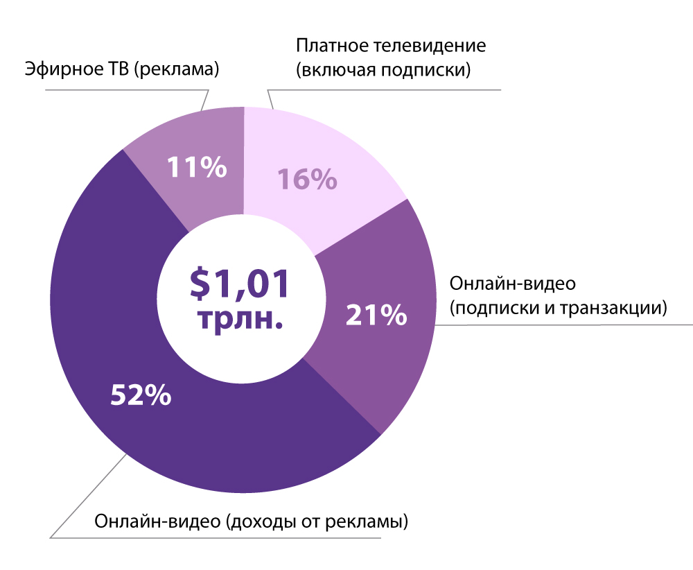 Как ожидается, в 2025 году доход от потокового видео в мире достигнет $214,6 млрд. При этом доходы от подписки на онлайн-видео составят 77% от общего объема. Доходы от премиальной рекламы, по прогнозам, составят $42,1 млрд по всему миру, что на 15,6% больше, чем в 2024 году.